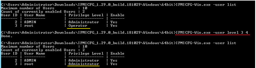 IPMICFG-Win.exe -user level 3 4